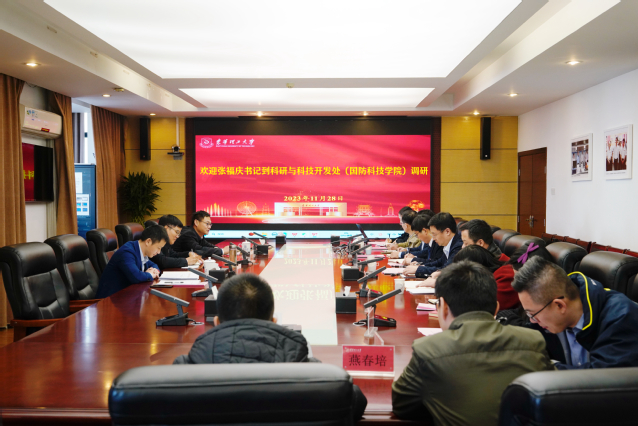 11月28日下午,东华理工大学党委书记张福庆深入科研与科技开发处(国防科技学院)调研并指导工作,学术副校长王庆飞主持座谈会。