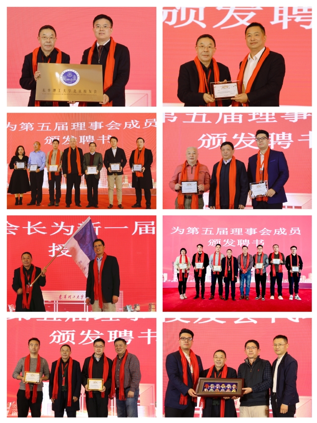北京校友会第四届理事会会长刘玉璋、秘书长游鹏作第四届理事会工作报告。东华理工大学国内合作与交流中心主任宣读了关于同意召开北京校友会换届大会的批复。会议修订了《北京校友会章程》《北京校友会资产及经费管理办法》,选举产生了北京校友会新一届理事会成员。张福庆、刘玉璋为北京校友会授牌、授旗,学校领导为理事会成员颁发聘书。天津校友会向北京校友会赠送礼物。