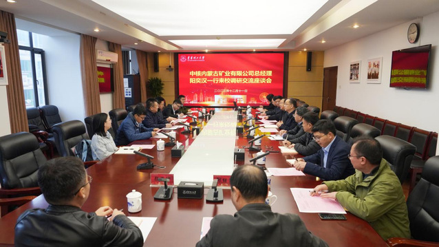 12月11日上午,中核内蒙古矿业有限公司总经理阳奕汉、苏尼特左旗分公司经理王如意一行到东华理工大学调研交流。学校在南昌校区行政楼401会议室召开座谈会。东华理工大学校长徐景坤,原党委副书记、校长孙占学,校党委常委张立亭出席会议,会议由校党委常委、副校长夏菲主持。