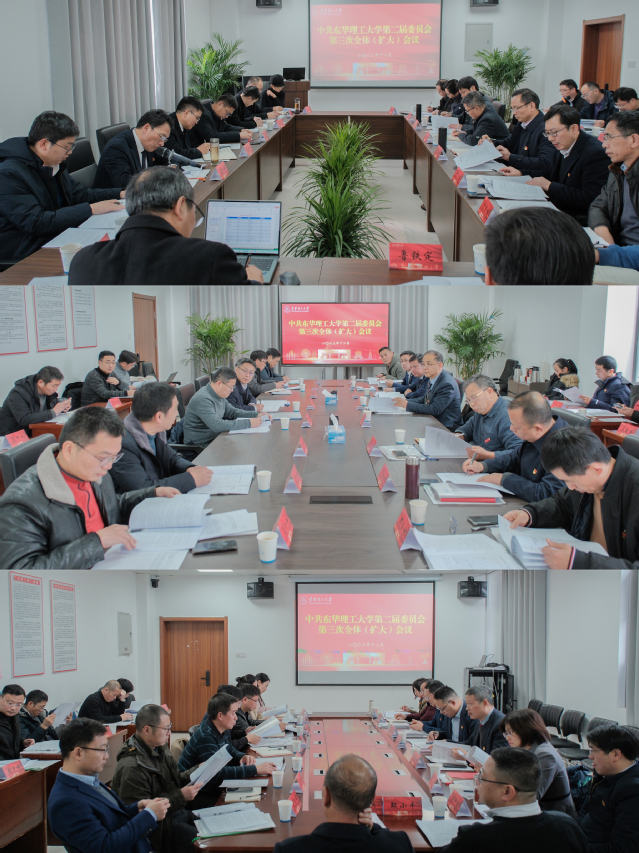 12月26日,中共东华理工大学第二届委员会第三次全体(扩大)会议在南昌广兰校区召开。学校在家党政领导班子成员张福庆、徐景坤、邱建丁、杨波、刘云海、樊文印、夏菲、熊国保、王庆飞、张立亭、刘剑斌、金建华,校党委委员、纪委委员,各处级单位主要负责同志参加会议。会议由邱建丁主持。