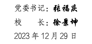岁序更替,万物维新,充满希望的2024年即将到来。值此辞旧迎新的美好时刻,学校党委、行政,向全体师生员工、离退休老同志、海内外校友,向长期关心、支持学校事业发展的社会各界朋友,致以最亲切的问候和最美好的祝福!