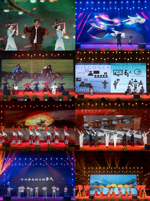 本场晚会由学校党委主办,校工会承办,党委办公室(校长办公室)、党委宣传部、校团委、校友事务中心协办,整个筹备工作历时六个月,得到了学校领导、各相关部门、学院和各分工会的大力支持。晚会全程由教职工自主设计、编排,充分展现出东华理工大学教职工多才多艺、蓬勃进取的精神风貌,体现了学校“三全育人”的成果。(文/图 刘宇翔)