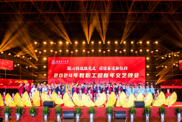 12月28日,东华理工大学“凝心铸魂跟党走 团结奋进新征程”2024年教职工迎新年文艺晚会在南昌广兰校区体育馆隆重举行。东华理工大学党委书记张福庆,校长徐景坤,党委常委、副校长邱建丁、夏菲,党委常委张立亭、刘剑斌、金建华出席晚会。晚会全程以在线直播的方式通过官微视频号等平台同步向全球直播,广大校友、学校师生及各级领导嘉宾和社会各界人士1.5万余人观看。