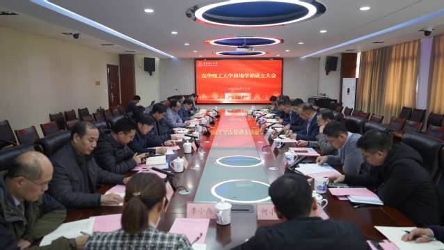 12月29日下午,东华理工大学在国防科技楼12楼会议室召开核地学部成立大会。校党委书记张福庆,校长徐景坤,校党委常委、副校长邱建丁、杨波、夏菲,学术副校长王庆飞,党委常委金建华,相关职能部门负责人,核地学部部务委员会成员出席会议。会议由邱建丁主持。