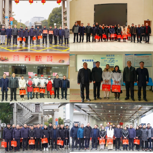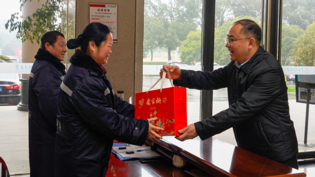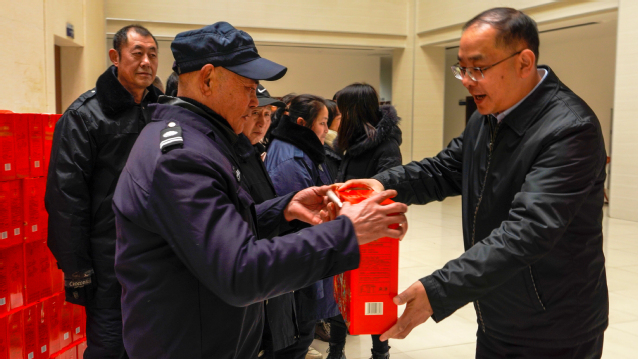 校领导一行先后来到学校门岗、水电控制室、物业办公室、校医院、餐厅、超市等一线岗位,亲切慰问节日期间坚守岗位的工作人员,并为他们送上节日慰问品。