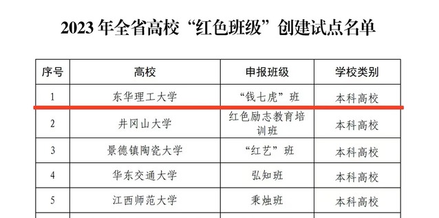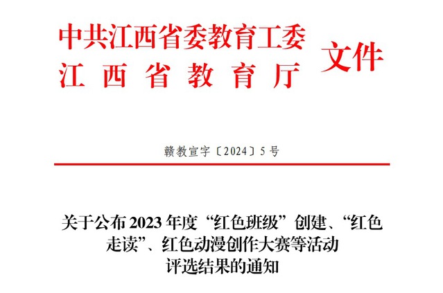 近日,江西省委教育工委、省教育厅公布了2023年度全省高校“红色班级”创建、“红色走读”、红色动漫创作大赛等活动评选结果,东华理工大学获2023年全省高校优秀组织单位(全省10个),东华理工大学“钱七虎”班入选2023年度全省高校“红色班级”创建试点班级(全省10个),“红色走读”实地走读分别获一、二、三等奖各1项,“红色走读”优秀“云游”作品获奖10项(全省排名第一),红色动漫创作大赛获一等奖1项(全省4个)。