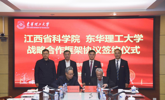3月15日,东华理工大学与江西省科学院战略合作框架协议签约仪式在学校广兰校区行政办公楼401会议室举行。省科学院党组书记、院长范小林,党组成员、副院长章国勇,党组成员、总工程师古和今;东华理工大学党委书记张福庆,党委副书记邱建丁,副校长汤彬,党委常委、纪委书记樊文印,党委常委、副校长杨波、夏菲、熊国保出席。仪式由东华理工大学校长徐景坤主持。
