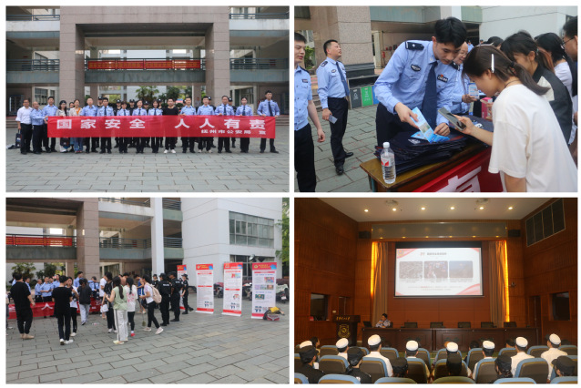 4月15日下午,学校利用警校协作的形式,邀请抚州市公安局警官到抚州校区图书馆报告厅为200多名师生开展了《国家安全,你我共建》专题讲座,讲座以大量的图片、视频介绍了国家安全相关知识。随后学校联合抚州市公安局、临川区政法委、抚州市临川区公安分局等向师生发放国家安全宣传资料、宣传品1000余份,有效筑牢在校师生的国家安全意识。