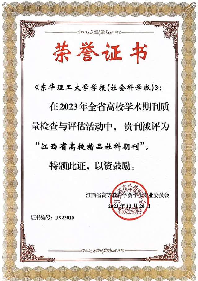 近年来,在校党委的坚强领导下,学报两刊始终坚持正确的办刊方向和特色办刊理念,在《东华理工大学学报(自然科学版)》成功入编《中文核心期刊要目总览》的同时,《东华理工大学学报(社会科学版)》也先后荣获全国高校优秀社科期刊、华东地区优秀期刊、江西省优秀期刊和江西省高校精品社科期刊。《东华理工大学学报(社会科学版)》刊发学术论文多次被人大复印报刊资料全文转载。(文/图 张再芝)