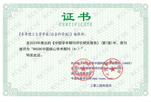 近日,由杭州电子科技大学中国科教评价研究院、武汉大学中国科学评价研究中心、武汉大学图书馆、中国科教评价网等单位联合研制的《中国学术期刊评价研究报告——RCCSE权威、核心期刊排行榜与指南》(第7版)正式发布。《东华理工大学学报(社会科学版)》入选“RCCSE中国核心学术期刊(A-)”。这是继《东华理工大学学报(自然科学版)》成功入编2023版《中文核心期刊要目总览》后,业界对学校办刊质量和学术影响力的又一充分肯定。