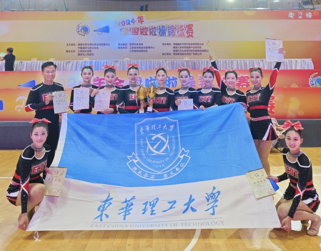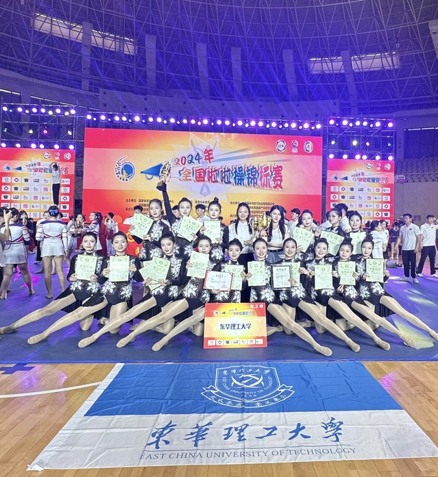6月1日至8日,由国家体育总局体操运动管理中心主办的2024年全国啦啦操锦标赛在江西鹰潭市举行。东华理工大学学生代表队斩获3项冠军,教工代表队斩获2项冠军,东华理工大学获“全国校园大课间啦啦操推广实施单位”称号。