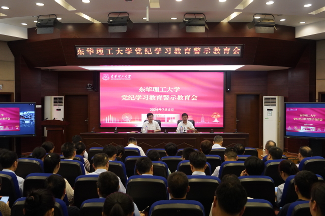 7月5日上午,东华理工大学在广兰校区行政楼一楼报告厅召开党纪学习教育警示教育会,深入学习贯彻习近平总书记关于全面加强党的纪律建设的重要论述,开展以案说德、以案说纪、以案说法、以案说责。校党委书记张福庆主持会议并讲话。学校党政领导班子成员出席会议。