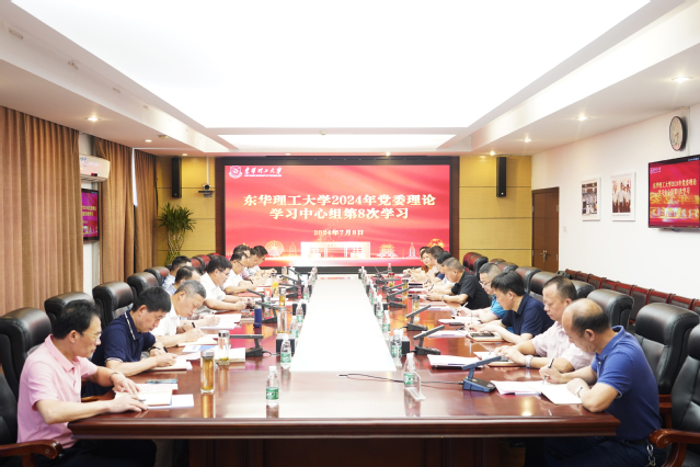 7月8日,东华理工大学党委书记张福庆主持召开2024年党委理论学习中心组第8次集体学习会,深入学习习近平总书记考察江西重要讲话精神、习近平总书记在进一步推动长江经济带高质量发展座谈会上的重要讲话精神。校党委理论学习中心组成员参加会议。