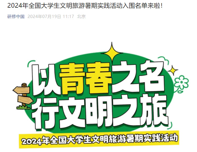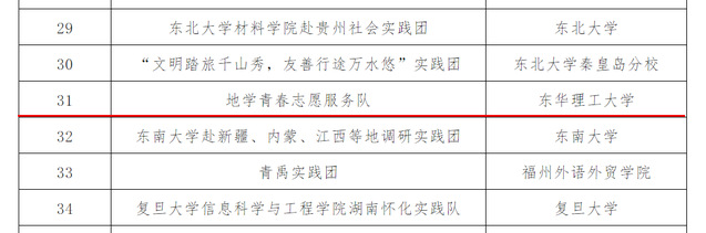 近日,文化和旅游部市场管理司、教育部思想政治工作司、共青团中央青年发展部联合发布“以青春之名 行文明之旅”——2024年全国大学生文明旅游暑期实践活动入选团队名单。来自全国31个省、自治区、直辖市550所高校的1750支大学生实践团队报名参与,最终300支大学生实践团队成功入选。东华理工大学地球科学学院“地学青春”志愿服务队榜上有名。