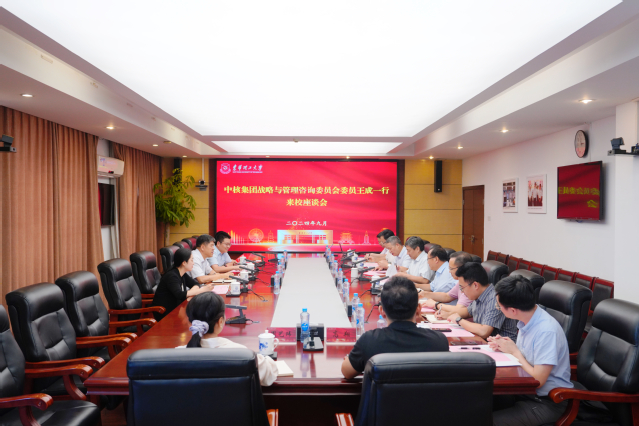 9月6日,中核集团战略与管理咨询委员会委员王成带队到东华理工大学交流,校党委书记张福庆亲切会见。学校在广兰校区行政楼召开座谈会,校党委副书记、校长罗仙平,校党委常委、副校长夏菲、李满根出席。会议由校党委常委、副校长熊国保主持。