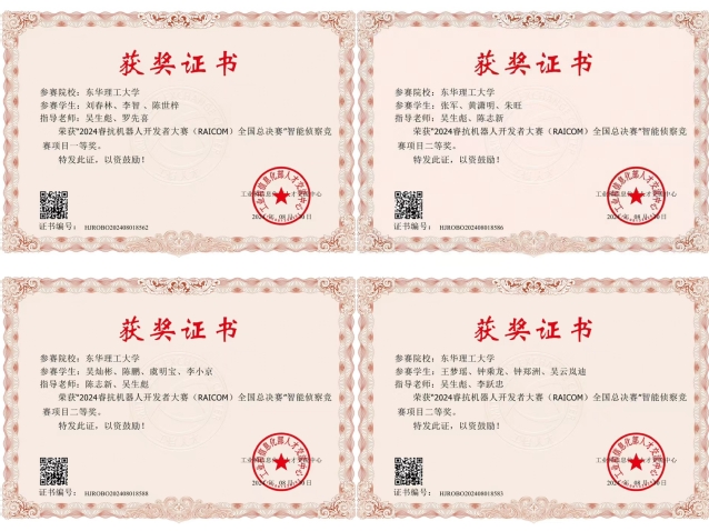 近日,由工业和信息化部人才交流中心主办的“2024年睿抗机器人开发者大赛(RAICOM)全国总决赛”在杭州落下帷幕。东华理工大学机械与电子工程学院团队在CAIR工程竞技赛道中荣获全国一等奖1项、全国二等奖3项,吴生彪获评“优秀指导老师”。