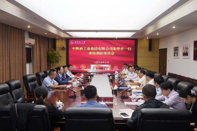 10月16日,中陕核工业集团有限公司党委书记、董事长朱华平带队到东华理工大学调研交流。学校在南昌广兰校园行政楼401会议室召开座谈会,校党委书记张福庆,校党委常委、副校长夏菲出席。