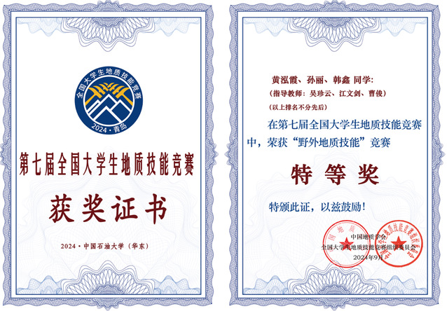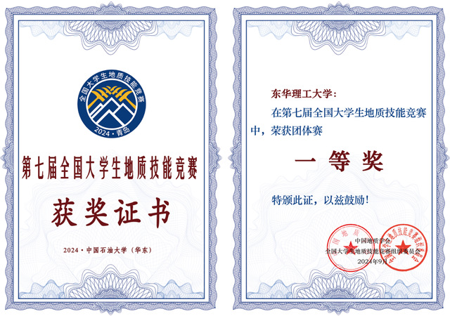 近日,第七届全国大学生地质技能竞赛在山东省青岛市中国石油大学(华东)落下帷幕。东华理工大学地球科学学院的9位本科生组成的3支代表队,分别斩获单项特等奖1项,一等奖2项,二等奖3项,东华理工大学获得技能竞赛团体奖一等奖,取得了历次竞赛以来的最好成绩。