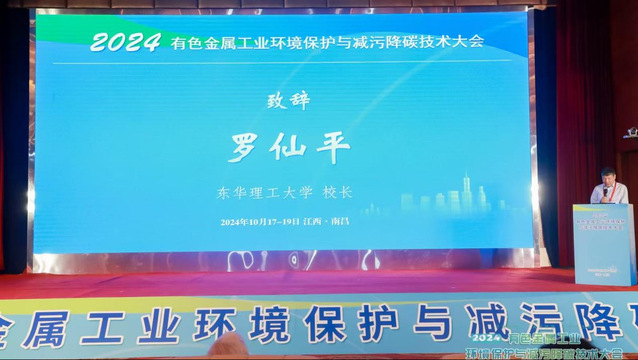 10月17日至19日,由矿冶科技集团有限公司、东华理工大学、江西理工大学、中国稀土集团有限公司、紫金矿业集团股份有限公司、江西省环境科学学会共同主办的2024有色金属工业环境保护与减污降碳技术大会在南昌顺利召开。大会主席东华理工大学党委副书记、校长罗仙平致辞,并作题为《废弃离子型稀土矿区生态修复技术》的专题报告。