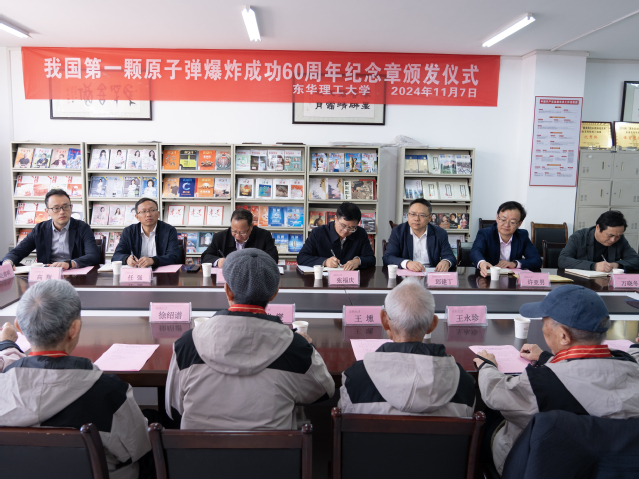 11月7日上午,东华理工大学在抚州学府校园离退休人员活动中心会议室举办“我国第一颗原子弹爆炸成功60周年”纪念章颁发仪式,向曾为我国原子能事业的发展作出重要贡献的15名老一辈东华理工人代表颁发纪念章。校党委书记张福庆,校党委副书记邱建丁,校党委常委、副校长夏菲出席仪式。