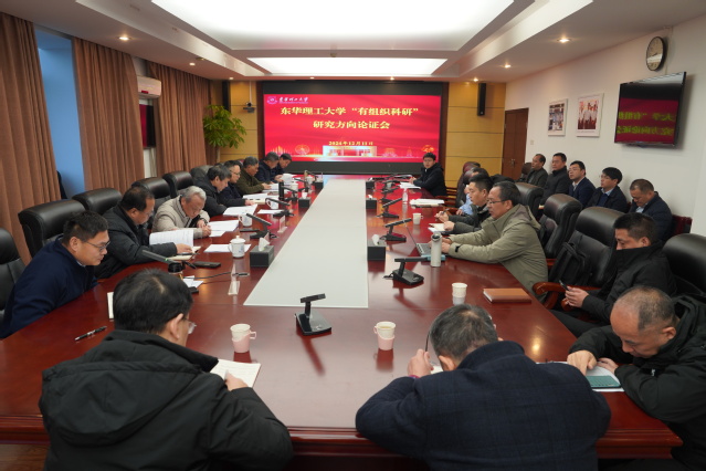 12月11日,东华理工大学在南昌广兰校园行政楼401会议室召开“有组织科研”研究方向论证会。校党委副书记、校长罗仙平,校党委副书记邱建丁,校党委常委、副校长夏菲、熊国保、邓居智,原副校长汤彬、郭福生出席。学术副校长王庆飞主持。