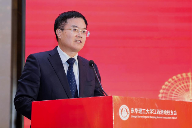 张福庆在致辞中指出,东华理工大学江西测绘校友会是学校成立的第一个行业属性的校友会,不仅顺应了时代发展的潮流,也为促进我省经济社会高质量发展提供了强有力的技术支持。期待江西测绘校友会在第一届理事会的带领下,秉承“敦本务实、崇义奉公”校训精神,建成校友间优势互补、共赢发展的坚实桥梁,汇聚智慧与力量的重要平台。希望江西测绘行业的广大校友能够充分利用这片土地赋予的独特优势,积极发挥引领和辐射作用,为推动母校高质量发展汇聚更大合力,助力母校早日建成“行业领先、国内一流、国际知名”特色高水平大学。