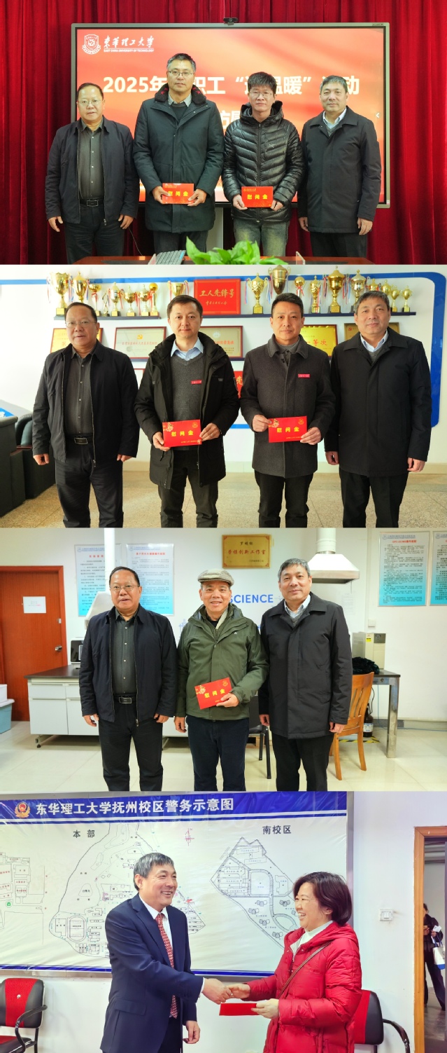 东华理工大学党委办公室(校长办公室)、抚州校区管委会、党委组织部、工会、人事处、离退休职工服务中心等部门负责人陪同走访慰问。(文/张蕾  徐越男  /刘宇翔  徐越男  王敏)