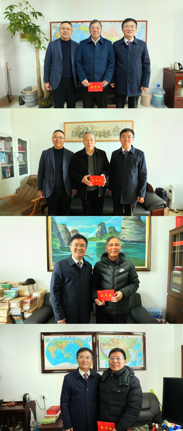 新春将至,岁寒情暖。近日,东华理工大学党委书记张福庆,党委副书记、校长罗仙平分别带队开展2025年春节前夕走访慰问活动,为离退休老领导、老干部,高技能人才、学科带头人、劳动模范、困难教职工和党员等群体代表送去学校党委和行政的关怀与温暖。在家校领导邱建丁、夏菲、熊国保、李满根、邓居智、金建华参加活动,并分组慰问了部分优秀教师、困难教职工和师生党员代表。