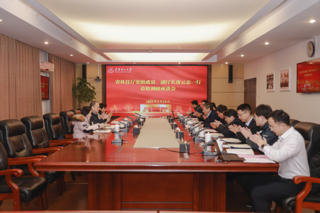 2月12日,省科技厅党组成员、副厅长唐云志一行到东华理工大学调研,学校召开座谈会,校党委副书记、校长罗仙平出席,校党委常委、副校长邓居智主持。